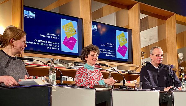 Foto zeigt Eva Keller, Sasha Marianna Salzmann und Christoph Biermann bei der Lesung im Literaturhaus.